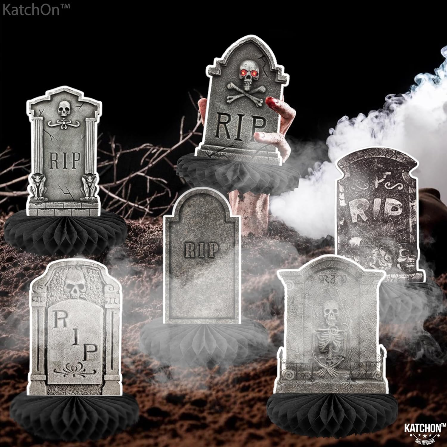 KatchOn, Halloween Tombstone Honeycombs - Pack of 12 | Halloween Table Centerpieces for Tombstone Halloween Decorations | Graveyard Tombstone Paper Honeycombs, Halloween Party Decorations