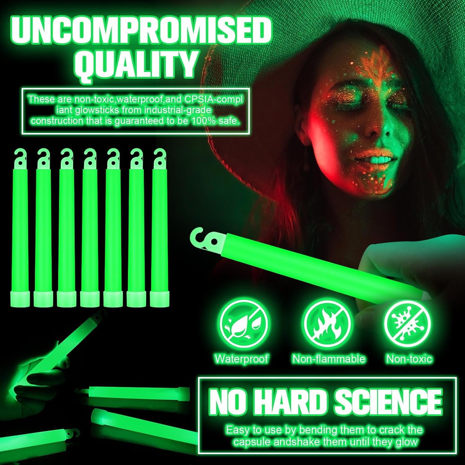 - Safe and Reliable: our glow sticks emergency are made of industrial grade construction and quality plastic material, non toxic and waterproof, not easy to break or deform, safe for most people to play for a long time
