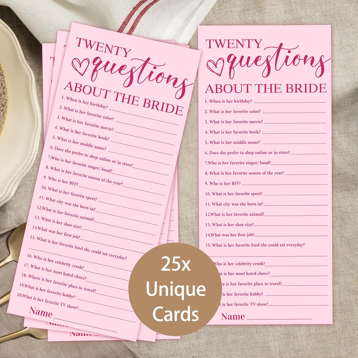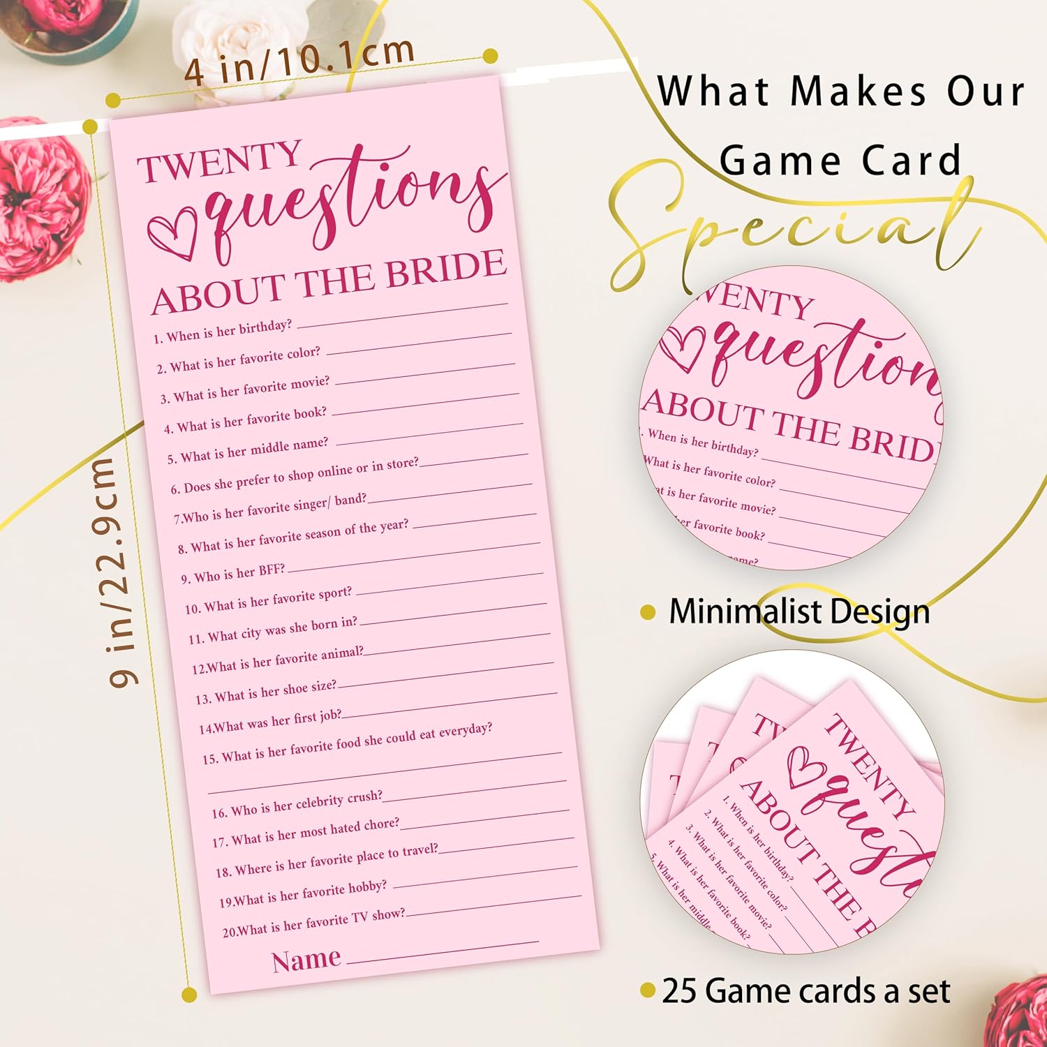 4x9 Inch Wedding Party Games, Bridal Shower Cards, 25 Pink Bridal Shower Games for Wedding Reception, Bachelorette, Engagement Party, Minimalist Guest Interaction Activity Cards-A12