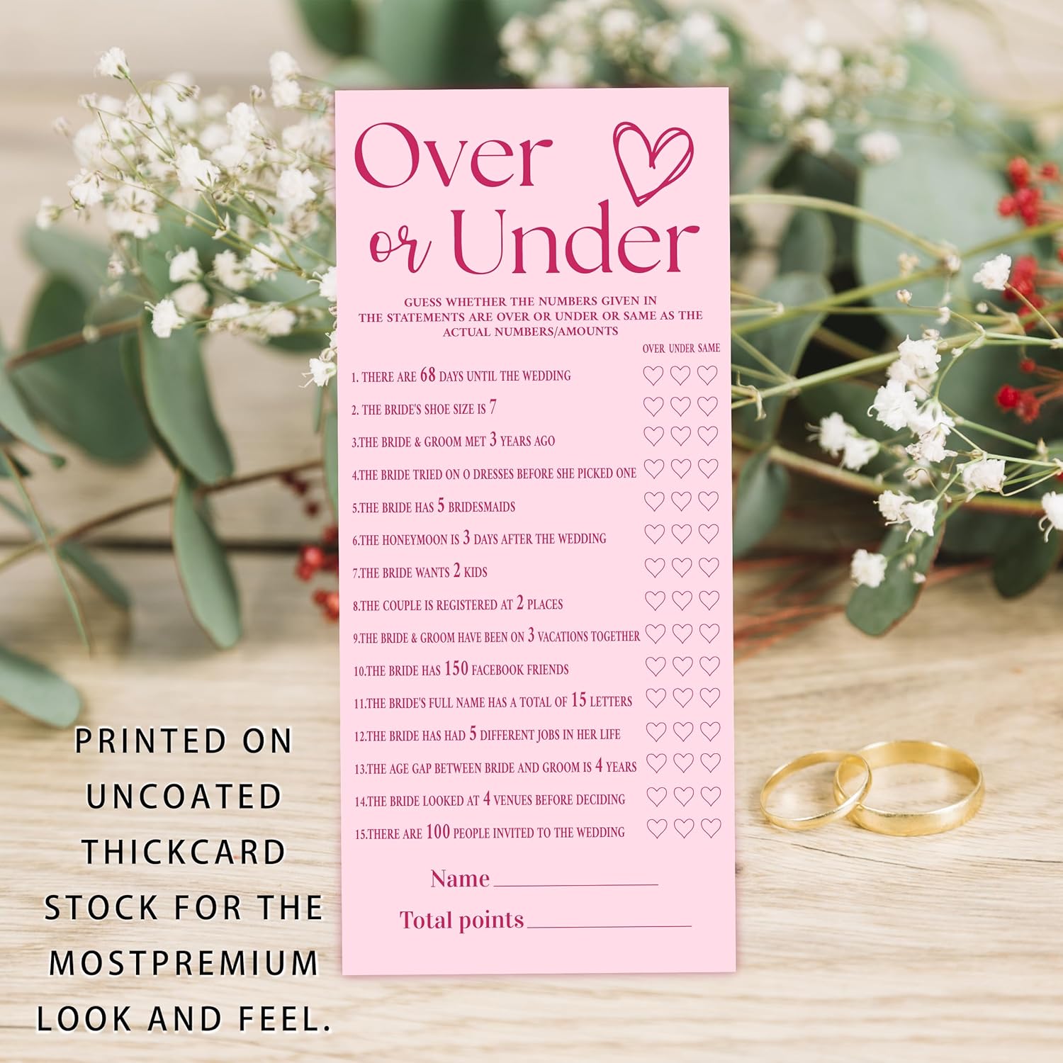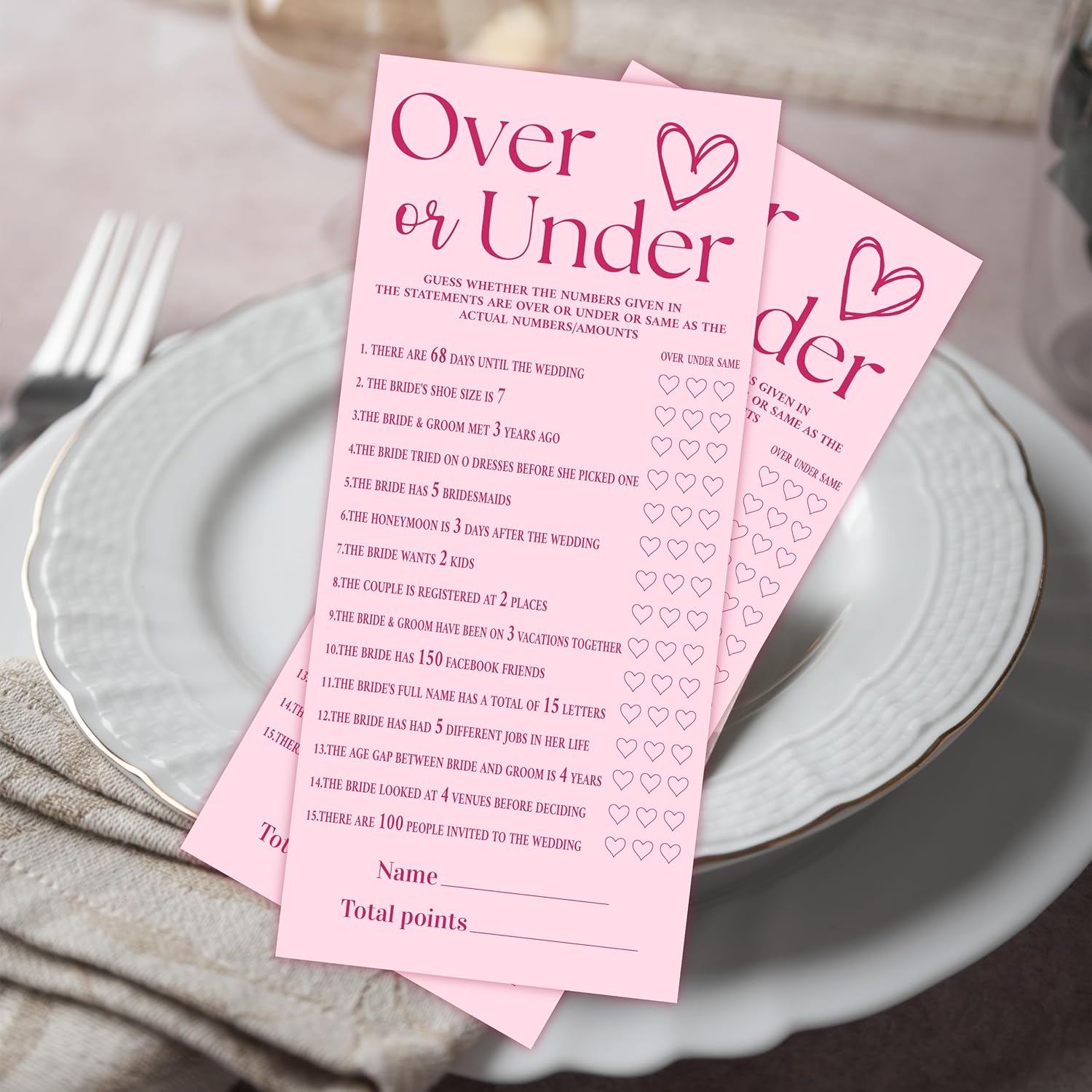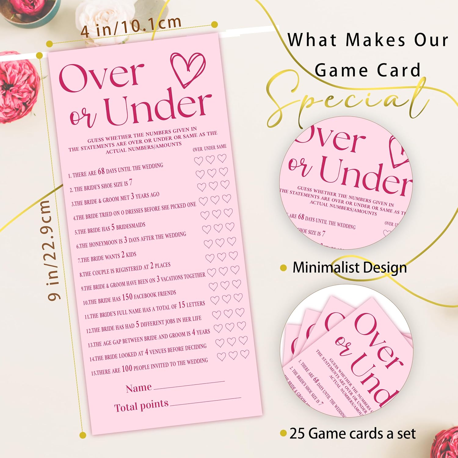 4x9 Inch Wedding Shower Games Cards, Over or Under, Pink Bridal Shower Games for 25 Guests, Engagement Party Supplies, Wedding Party Supplies Decoration-A01
