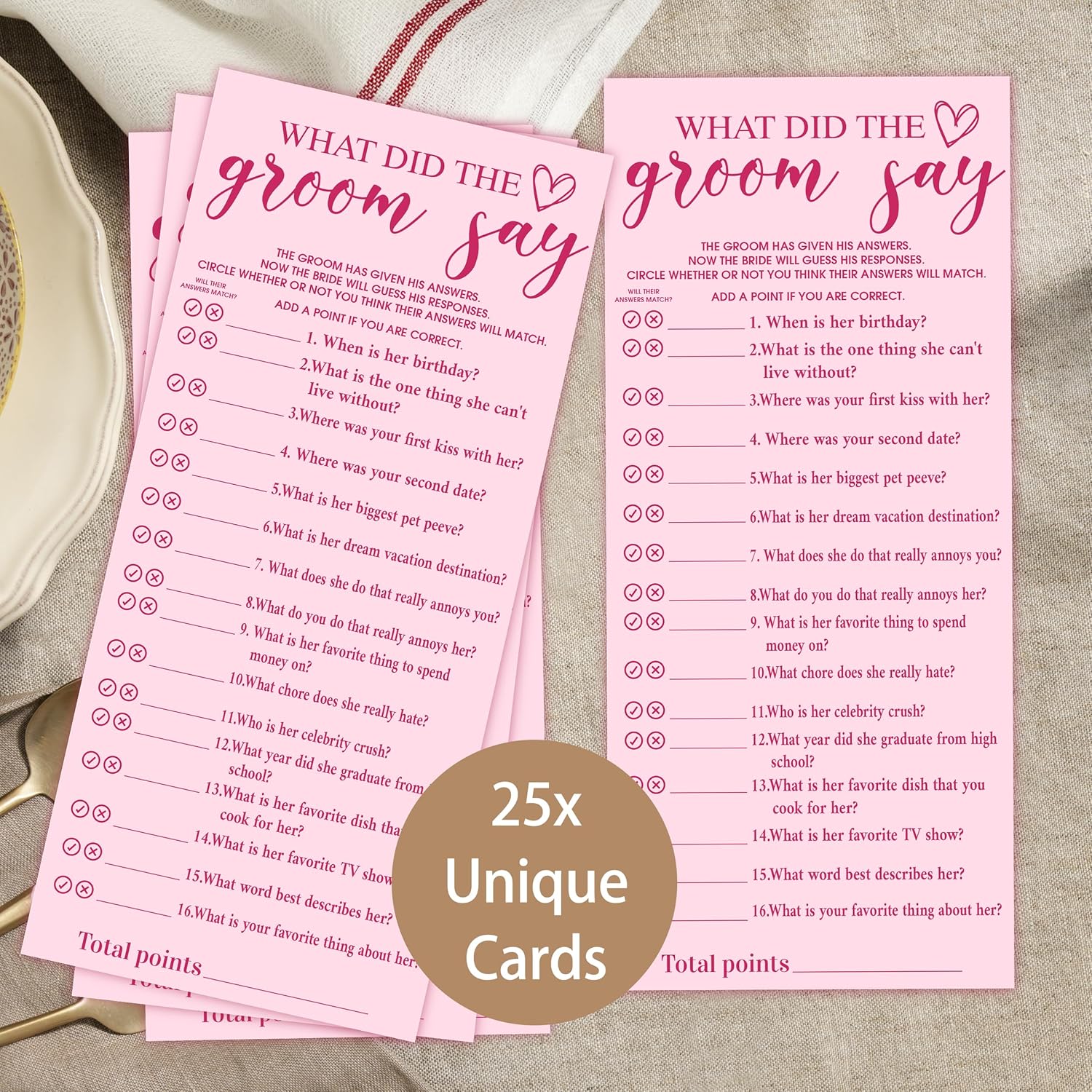 Pink Wedding Shower Games Cards, What Did The Groom Say, 4x9 Inch Bridal Shower Games for 25 Guests, Bride Wedding Receptio Supplies, Bridal Party Supplies Decoration-A07