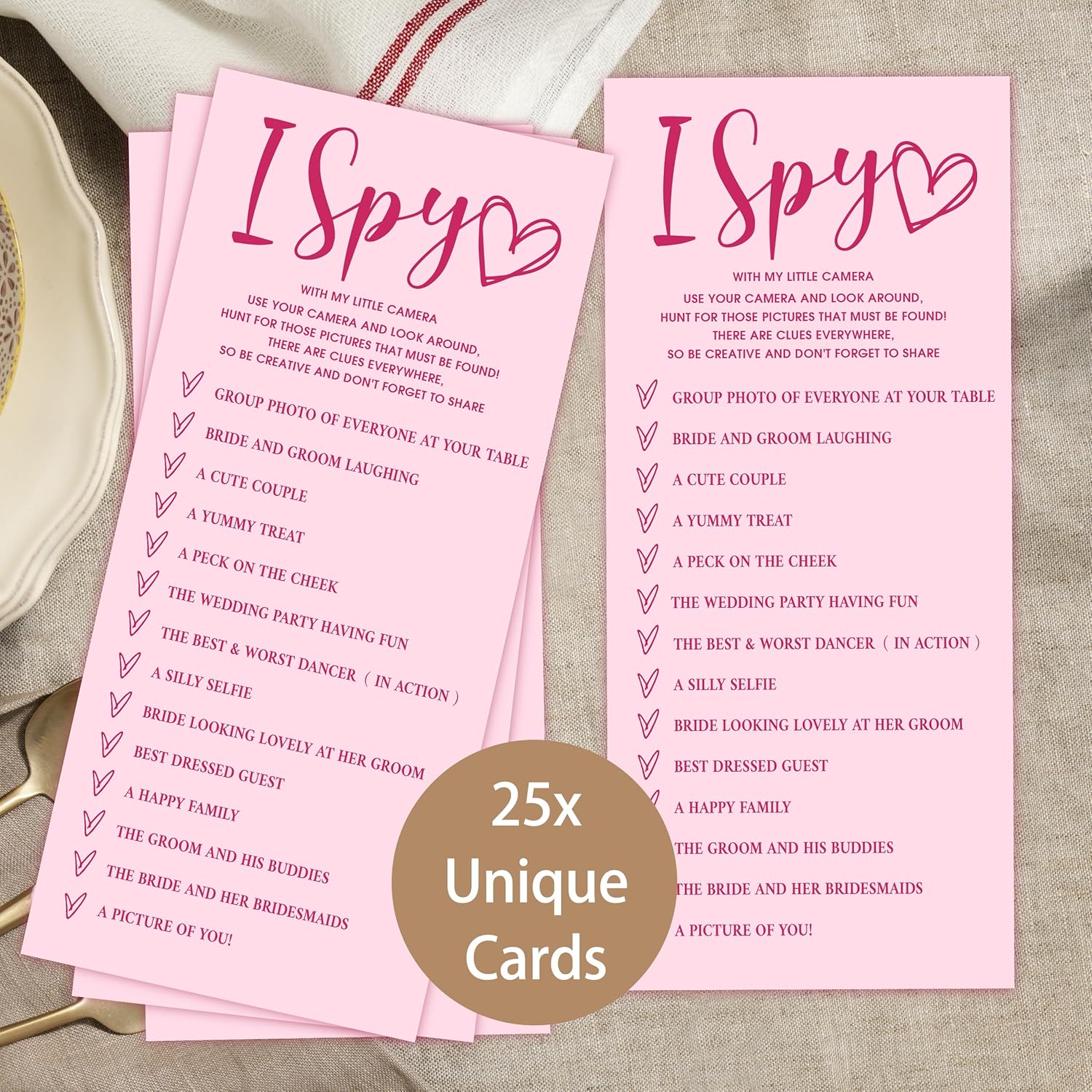 4x9 Inch Wedding Party Games, Bridal Shower Cards, 25 Pink Bridal Shower Games for Wedding Reception, Bachelorette, Engagement Party, Minimalist Guest Interaction Activity Cards-A13