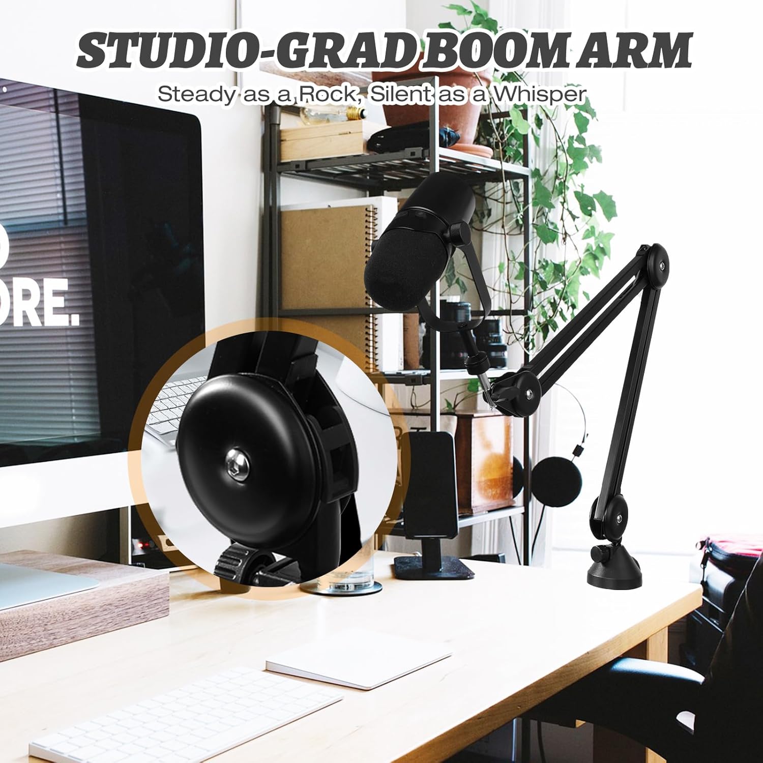 - Built to Last — Heavy-Duty Mic Boom Arm for Creators This all-metal microphone boom arm is engineered for durability and stability. Reinforced screws and premium materials keep your mic stand rock-solid — no shaking, no wobbling. Perfect desk microphone boom arm for gaming, podcasting, streaming, or studio recording. (Mic not included)