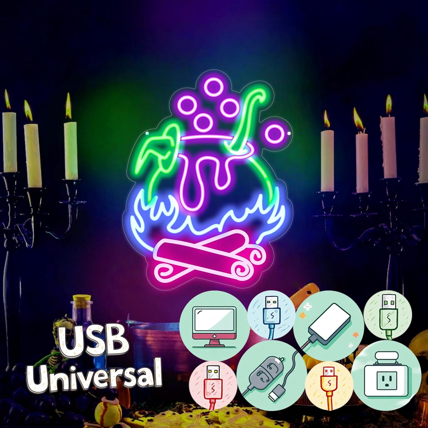 - 【Mystical Cauldron Glow】: Enchanted Illumination: This bubbling cauldron design features glowing potion effects and eerie green light - perfect for witchy spaces.